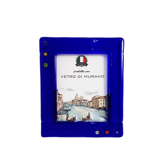 Cornice portafotografie in doppio vetro di murano blu con Murrine.