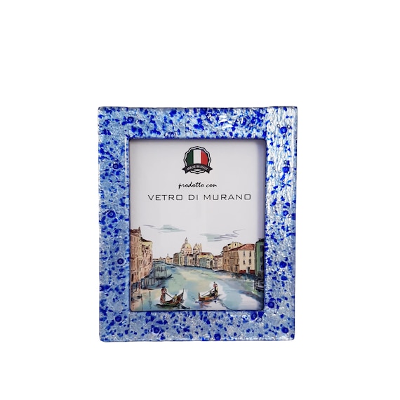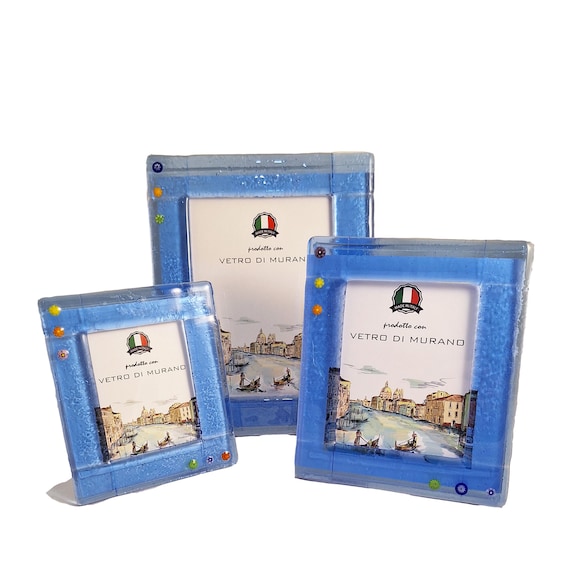 Cornice portafotografie in doppio vetro di murano azzurro con Murrine.