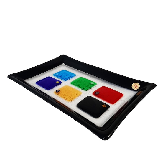 Piattino Centrotavola svuota tasche in doppio vetro di Murano bordo nero ''Esacolor''