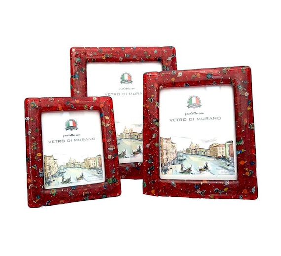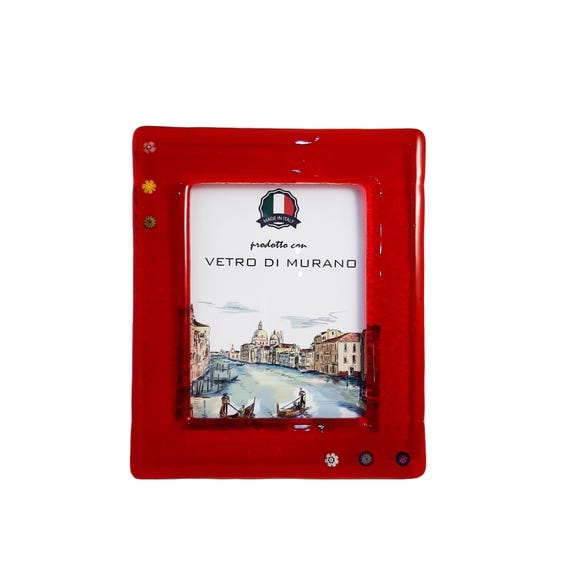 Cornice portafotografie in doppio vetro di murano rosso con Murrine.