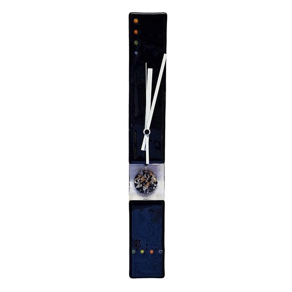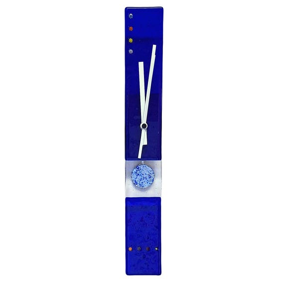Orologio da muro a pendolo in vetro di Murano – modello: STYLO S Blu Silver