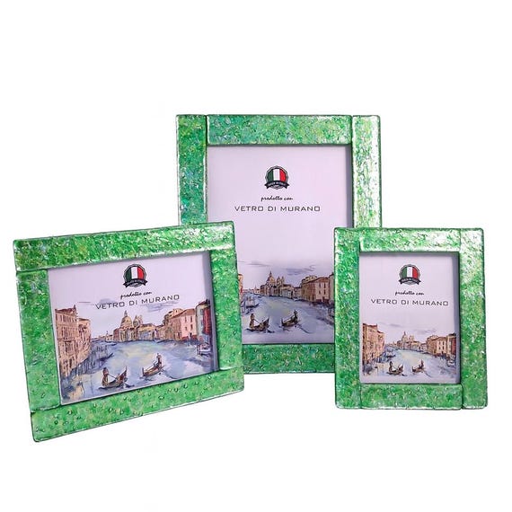 Cornice portafotografie in doppio vetro di murano verde con Foglia Argento.
