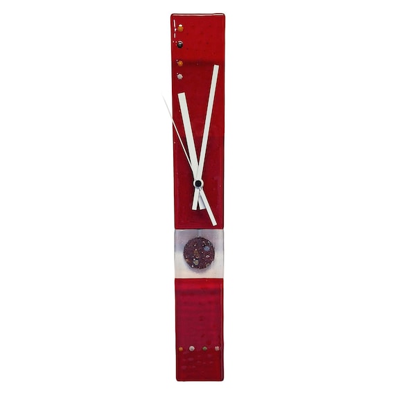 Orologio da muro a pendolo in vetro di Murano – modello: STYLO S ROSSO
